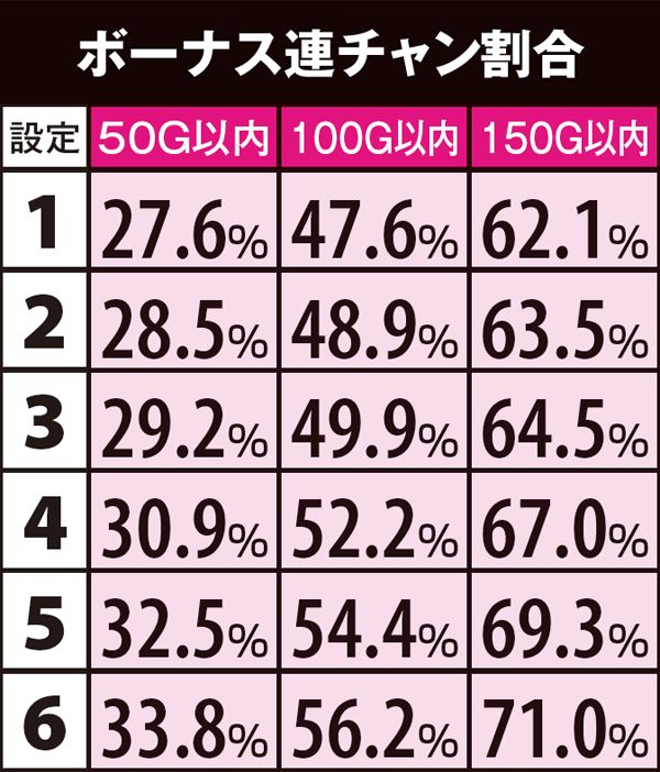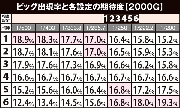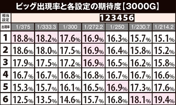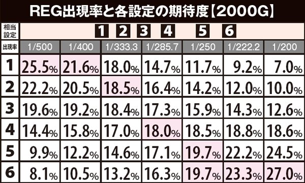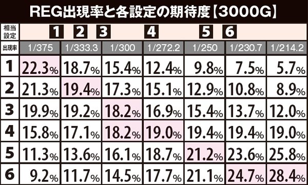 ※各設定期待度は設定1〜6が均等に配分されている場合の数値