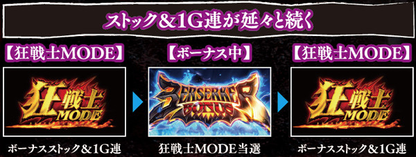本機の大量獲得パターンの1つが、延々と1G連が続くこのバーサーカーループ。起点になるのは狂う戦士MODEだ。