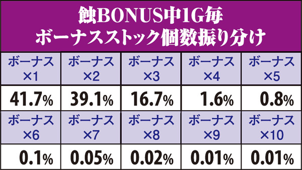 蝕BONUS中は毎ゲーム所定の割合でボーナスストック抽選が行われる。