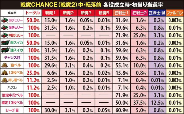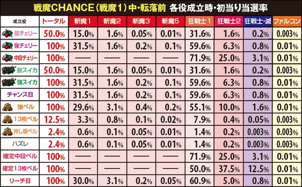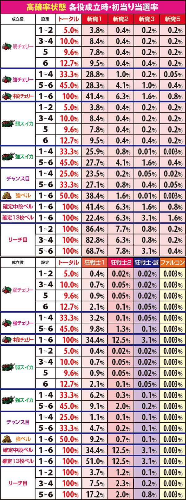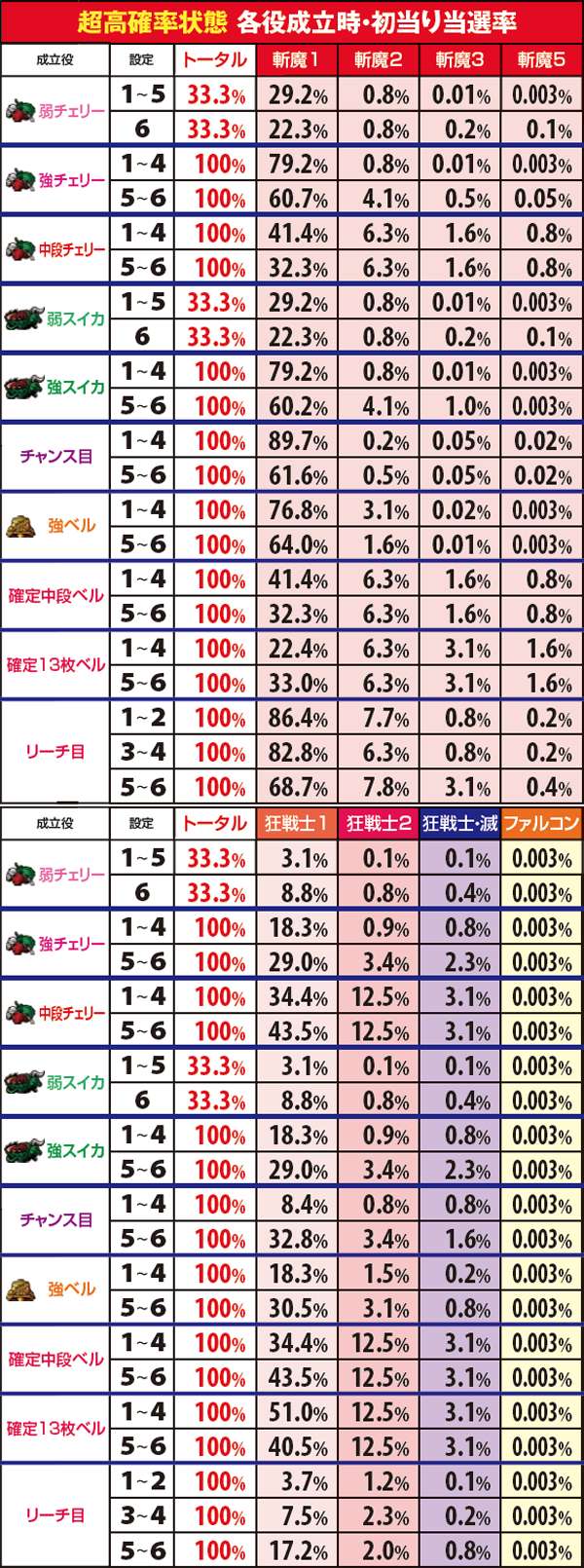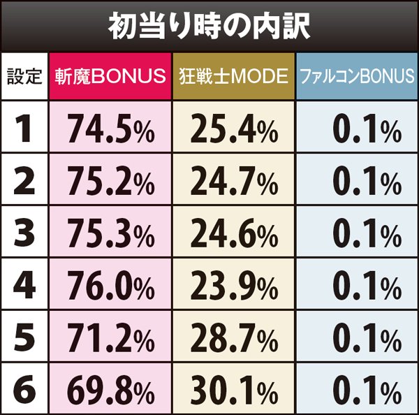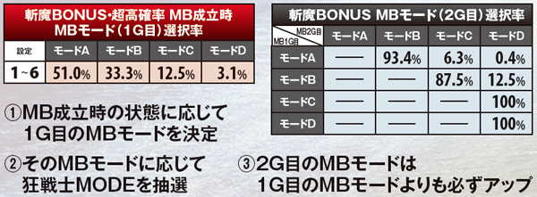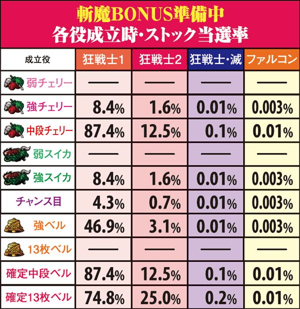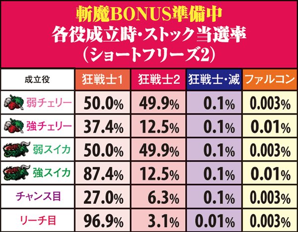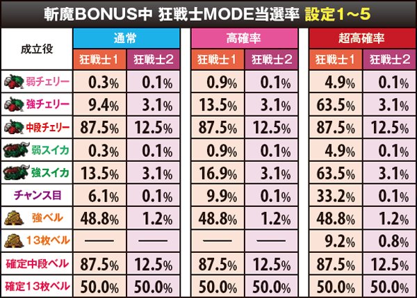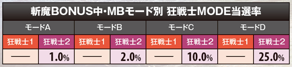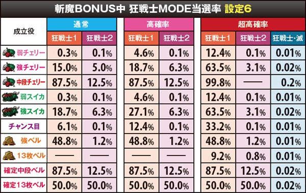 斬魔BONUS・狂戦士MODE当選率