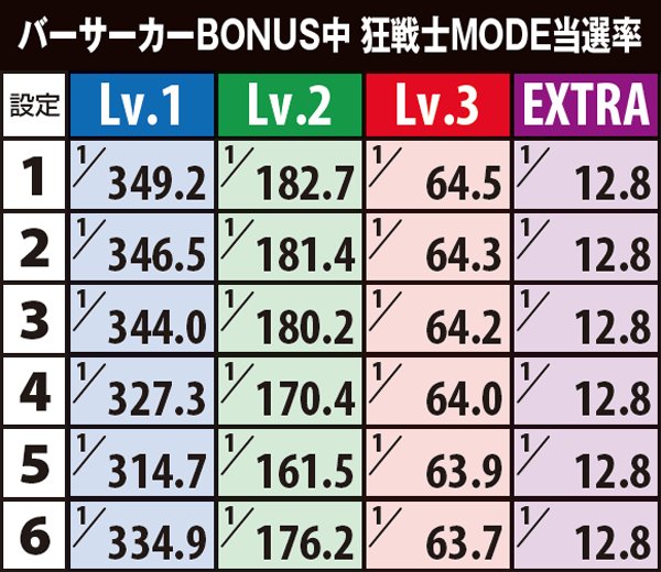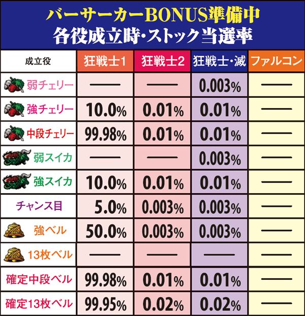 バーサーカーBONUS・狂戦士MODE当選率