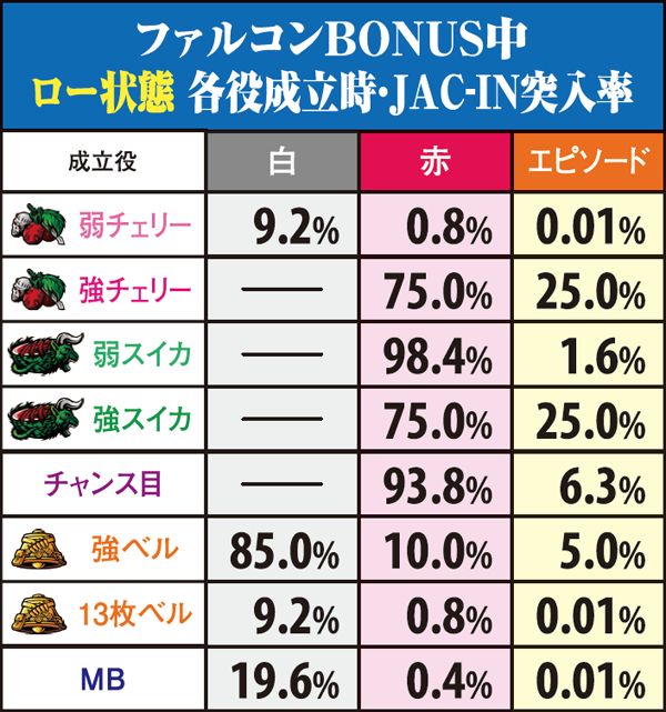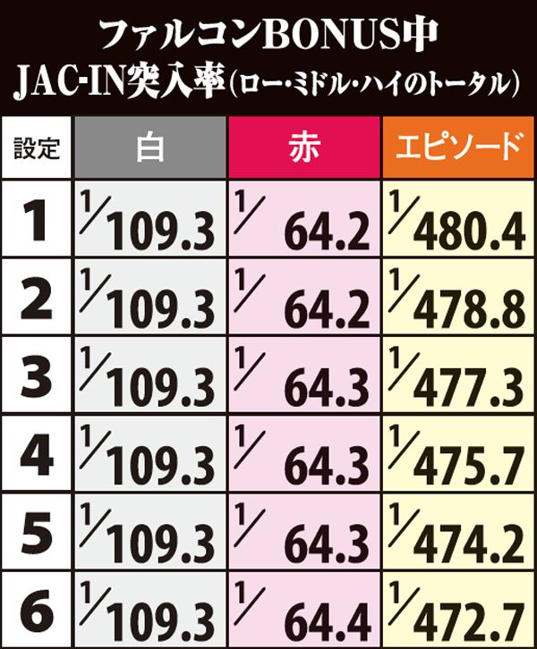 ファルコンBONUS・JAC-IN&エピソード突入率