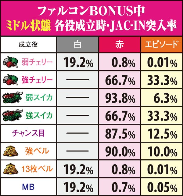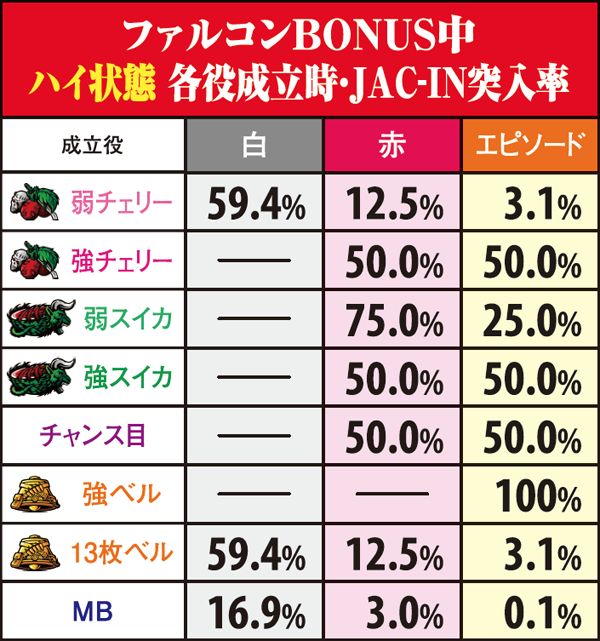 ファルコンBONUS・JAC-IN突入率