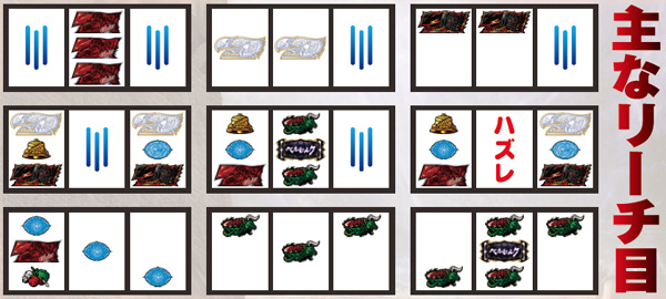 一般的にDDT打法を駆使すると、左リールを止めた時点でノーチャンスになることも多いが、本機は出目に関しても一切の抜かりなし。左リールがどの位置で停止してもリーチ目出現の可能性があるので、液晶演出のみならず出目でも楽しむことができるというわけだ。