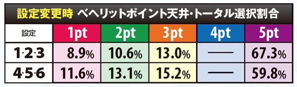 天井モード選択率・設定変更時