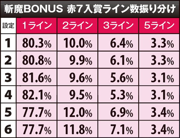 斬魔BONUS・7揃い確率