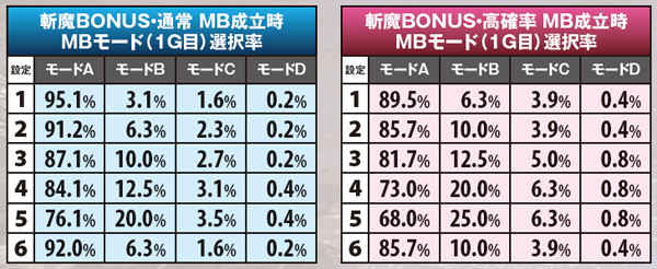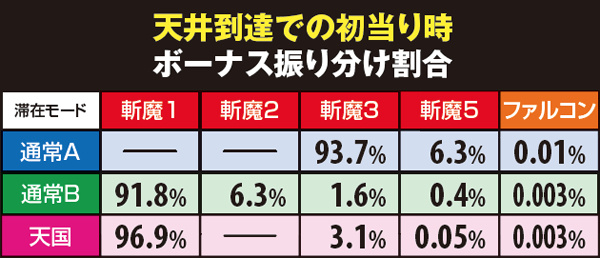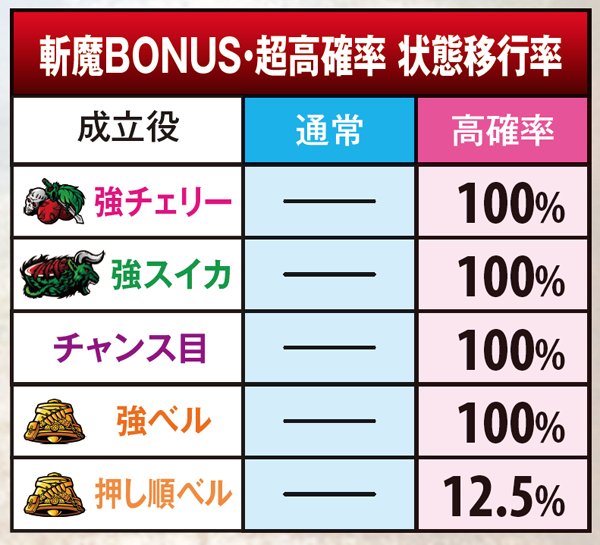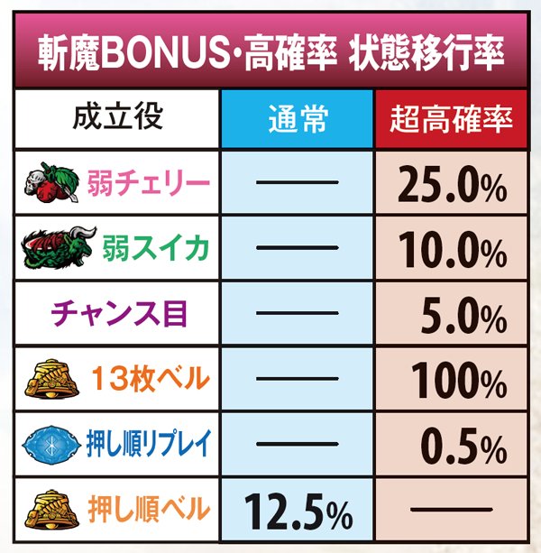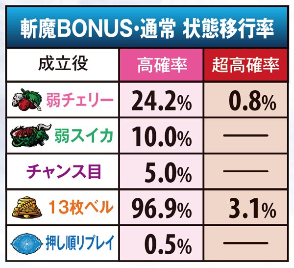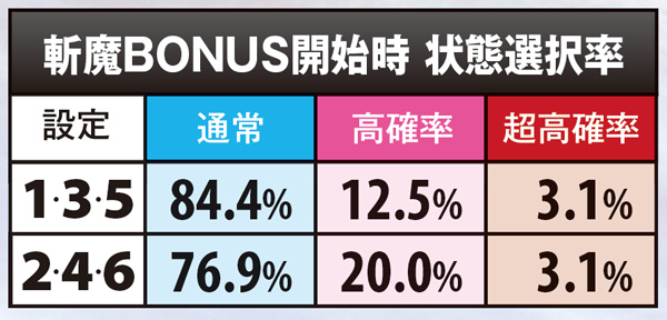 斬魔BONUS・内部状態移行率