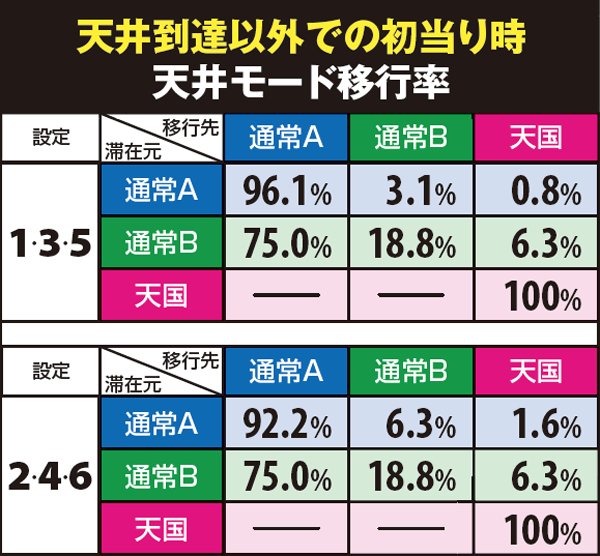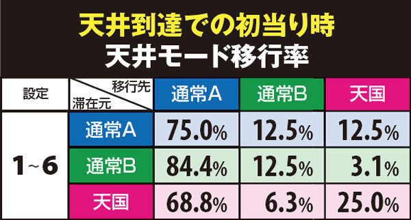 天井モード移行率・天井到達以外での初当り時