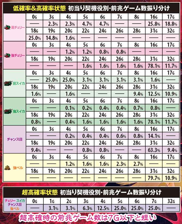 前兆ゲーム数振り分け・初当り契機役別