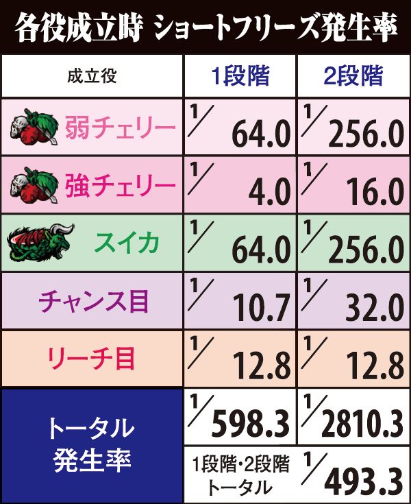 ショートフリーズ発生率・各役成立時