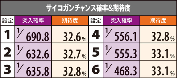 解析情報通常時 > 自力当選ゾーン > サイコガンチャンス・突入率&期待度を更新しました