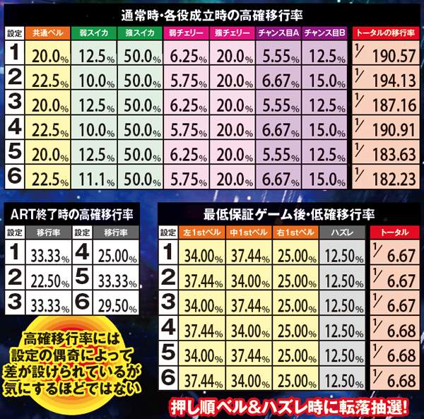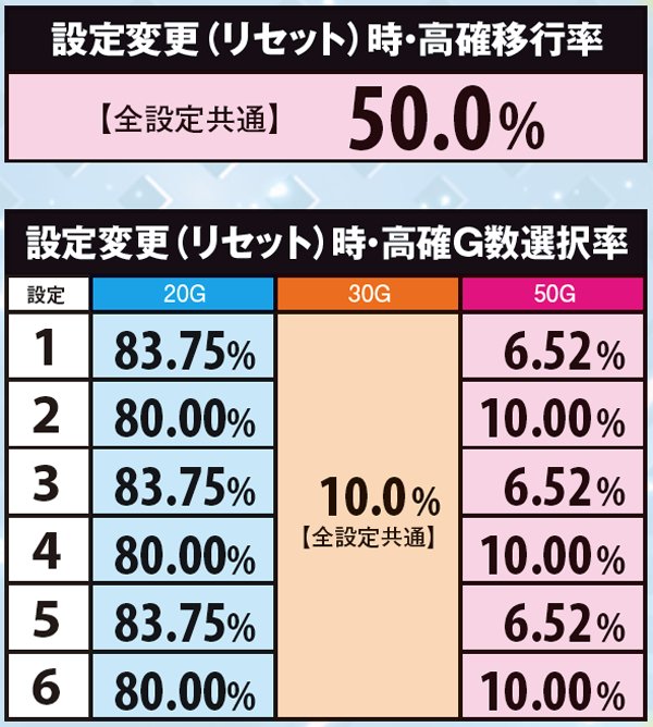 高確移行率&ゲーム数選択率・設定変更(リセット)時