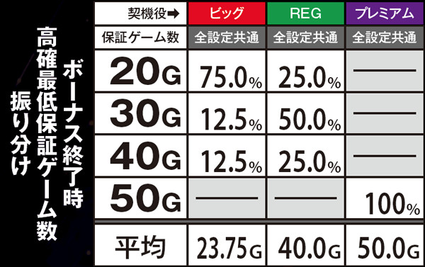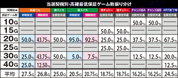 高確最低保証ゲーム数・ボーナス終了時振り分け