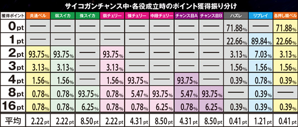 サイコガンチャンス・各役成立時のポイント獲得振り分け