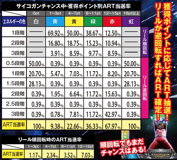 サイコガンチャンス中・獲得ポイント別ART当選率
