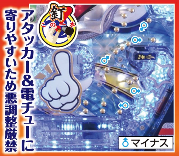 ドラムぱちんこ第2弾は人気アニメとのタイアップ。 注目アクションはインパクト抜群のドデカ図柄で、その後の展開に期待が持てる演出となっている。 また、4thリールにも注目。停止する図柄で期待度を示唆したり、先読みを予告したりとシンプルなドラムの演出にアクセントを付けているのだ。 |