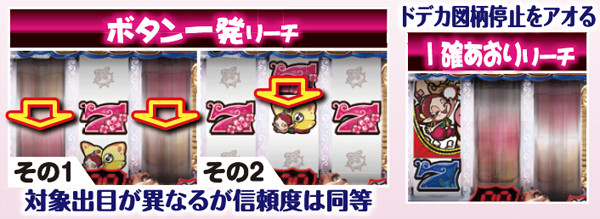 ドデカ図柄がドラム全体を覆い尽くしながら通過する激アツ予告。出現するポイントは全部で4つあり、それぞれ信頼度が違う。最も期待できるのはリール回転中だ。