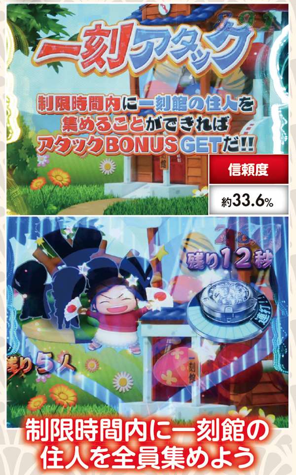 発生時点で約33.6%の信頼度を誇るアツい演出。3回に1回の割合でST突入が期待できる。