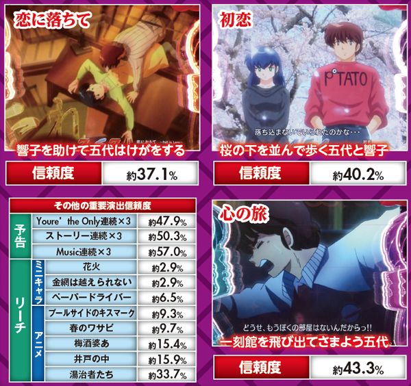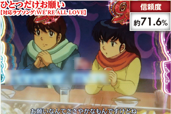 シリーズ初となるV確ST機として登場した「めぞん一刻」の羽根デジタイプ。 ST「WウエディングRUSH」中が五代と響子、2人の恋愛の軌跡がエピソードリーチとして展開し、クライマックスを迎える。また、物語を盛り上げる楽曲も豪華ラインナップ。つい口ずさんでしまうラブソングを多数搭載している。 |