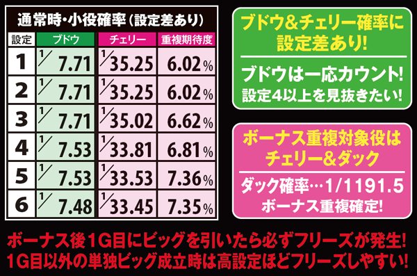 フリーズ時はサファリ系告知という特別な演出が発生する。また、ボーナス告知後はウェイト音まで告知ランプに対応して変化するという驚くほど細部にまでこだわった作りとなっている。