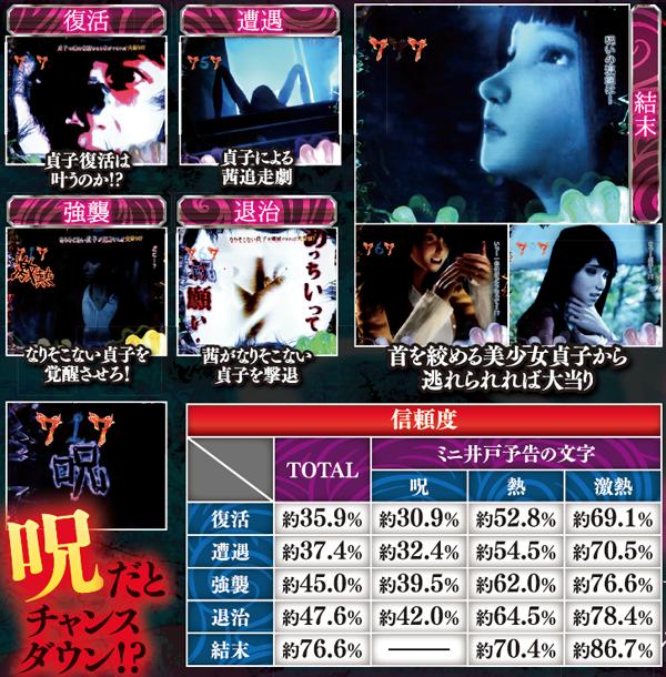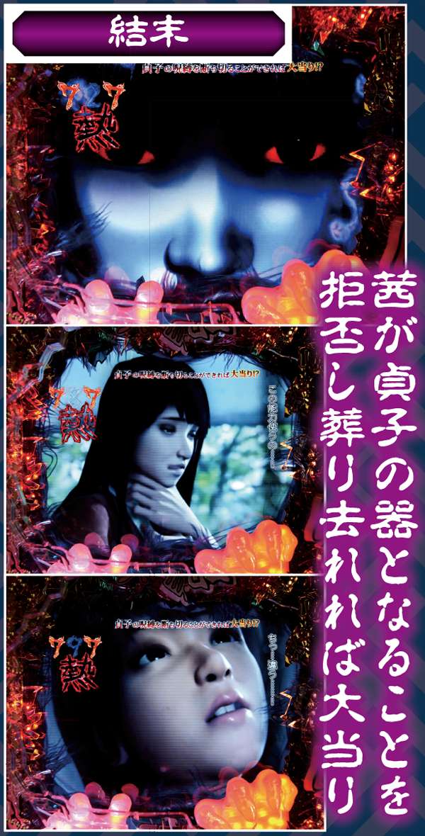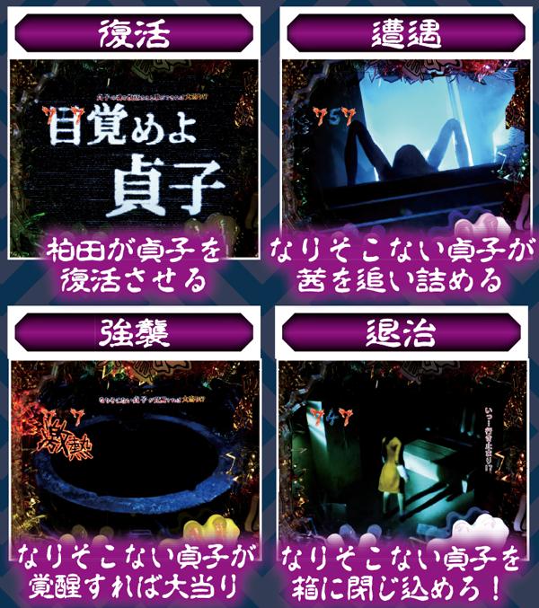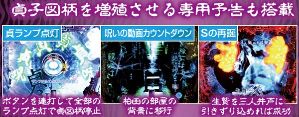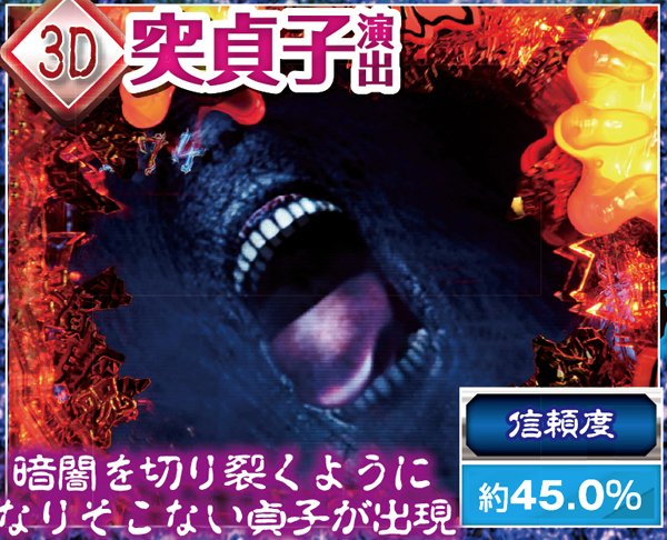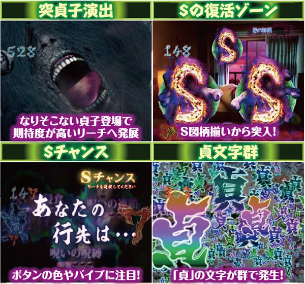 スーパー発展時を中心に、貞文字3つ揃いや呪いの動画再生時など様々なポイントで発生する最重要演出。