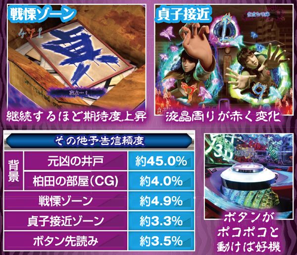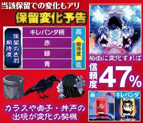 Sの復活以外にも保留先読み演出は複数存在する。なかでも元凶の井戸背景や保留変化の赤以上の発生は、大当りの好機到来だ。
