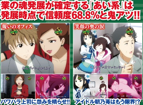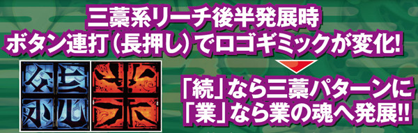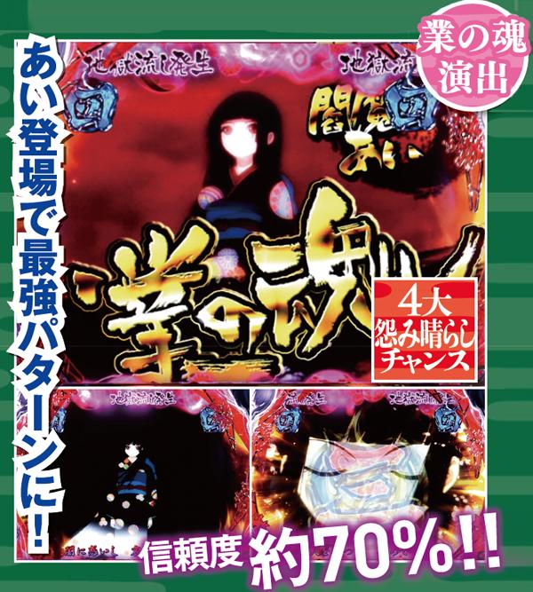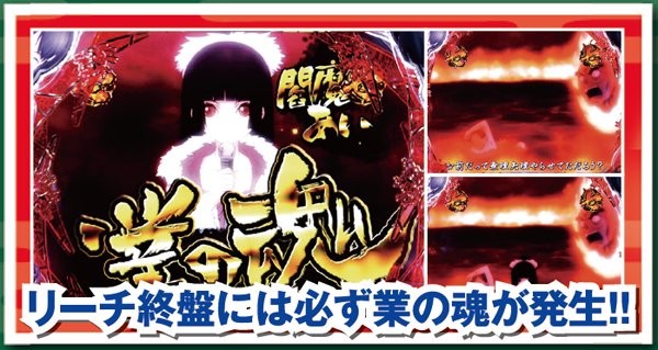 本機最強リーチとなるあい系は、終盤に必ず業の魂演出が発生する。2種類あるが、どちらとも信頼度に差はないので発展する事が重要だ。