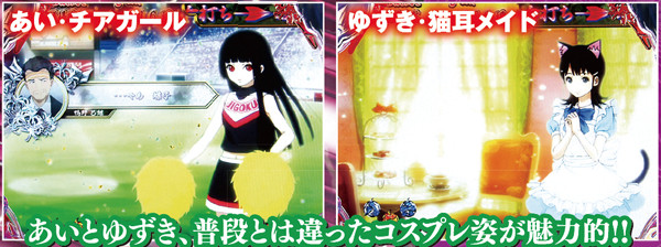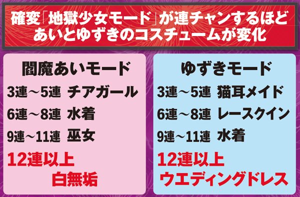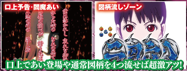 確変「地獄少女モード」のもう一つの楽しみ方と言えるのが、連チャンする毎に変わるヒロイン達の衣装。パチンコでしか見られない2人のコスプレ姿はファンでなくとも必見だ。