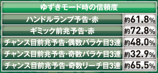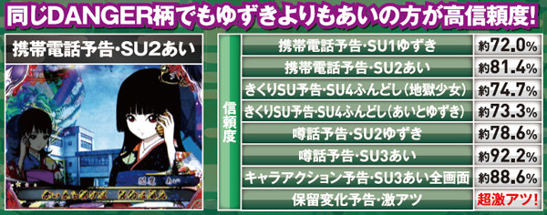 地獄少女モード「ゆずき」・登場キャラ別確変期待度(実戦上)