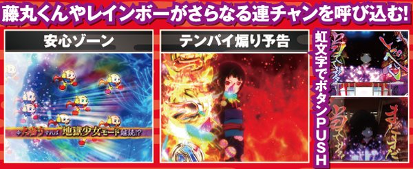 あいの呼びかけに三藁が応えれば継続確定となる。骨女到達で約4回に1回が大当りに結びつき、輪入道までいけば信頼度は驚愕の82%。さらに、あいが登場すれば全回転に発展するぞ。