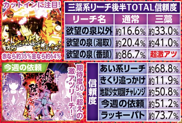 通常時・三藁系リーチ(業の魂演出)信頼度