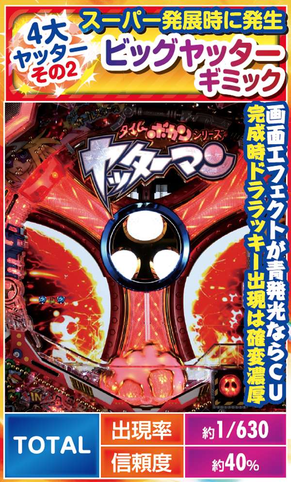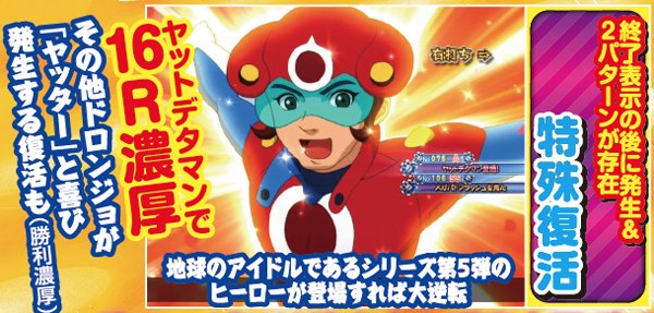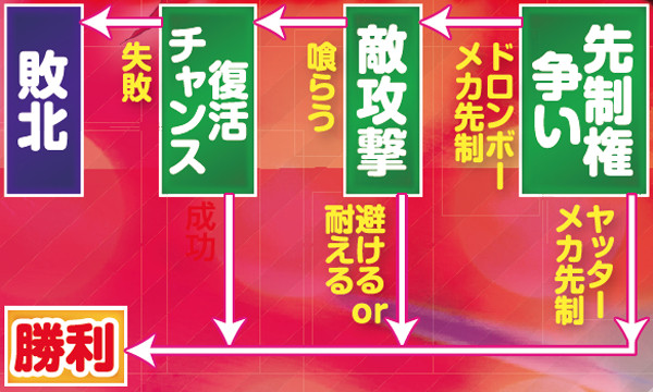 ヤッターメカの攻撃なら勝利濃厚となり、繰り出す技が強攻撃ならさらに16R濃厚となる。見分け方のキーワードは「ビーム」。ビーム発生とその箇所に注目だ。