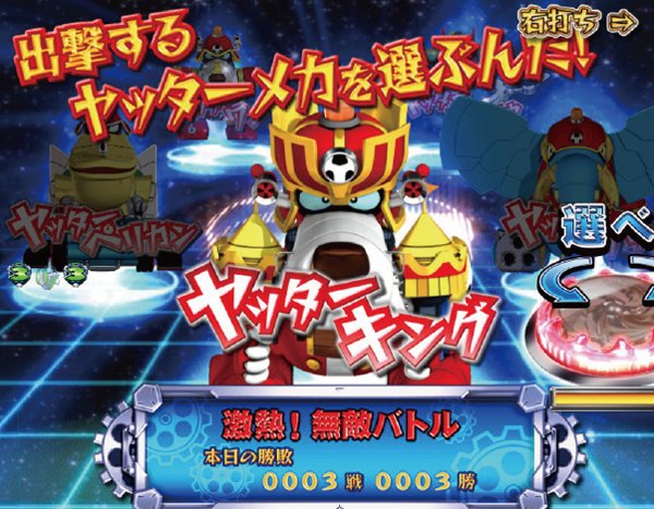 選んだメカによってその後の演出が大きく変化する「メカセレクト」では、選択画面にヤッターキングが出現すればその時点で勝利濃厚。