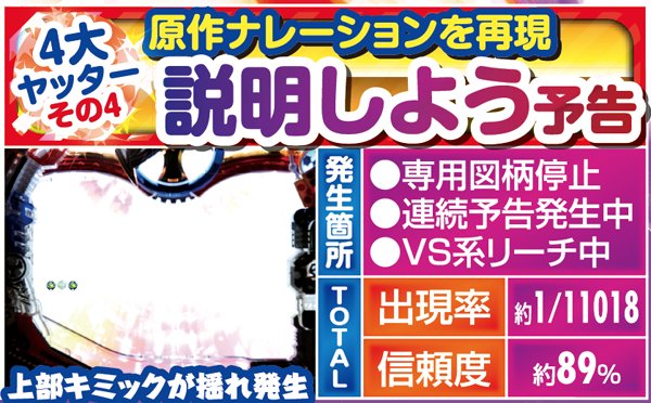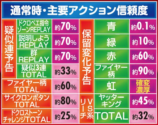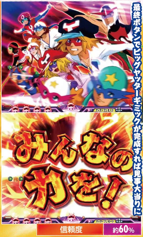 ※信頼度などの数値はヤッターマンモード(予告がバランスよく出現する演出モード)選択時のもの