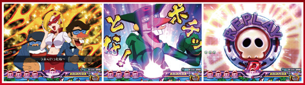 タイムボカンシリーズ歴代ヒーローが出現すれば、登場キャラに即したアクションが発生し一転、大チャンスに。