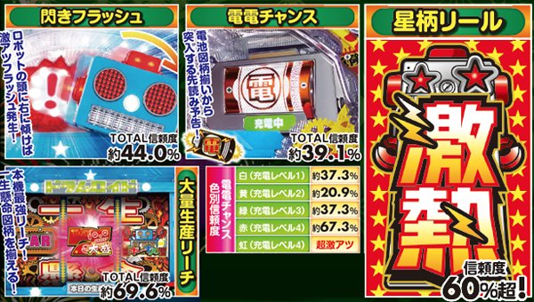 ここに挙げた4大生産ポイントはみな高信頼度を誇る激アツ演出となっており、初当りに絡むことが多いので、ぜひとも覚えておこう。また、それらの演出が複合すれば更に期待度がアップするぞ。
