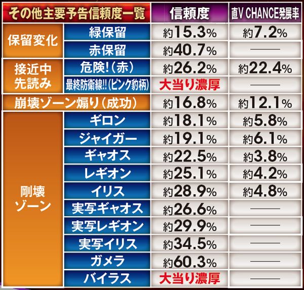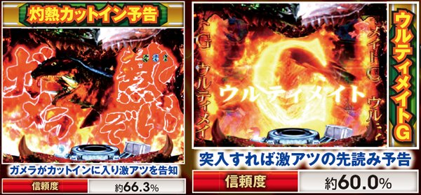 多彩な先読みが搭載されている本機だが、中でも「ウルティメイトG」は激アツ。突入すれば灼熱カットインなど他高信頼度予告複合のチャンスとなるぞ。