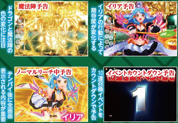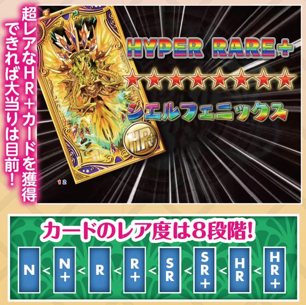 炎・風・氷・聖の4つの属性それぞれに8段階のレア度があり、HR(ハイパーレア)+なら大当りの期待度が一気に高まる。