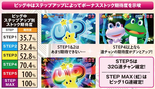 ・ビッグ1G連ストックあり時にSTEP MAXからビッグが始まる場合あり!