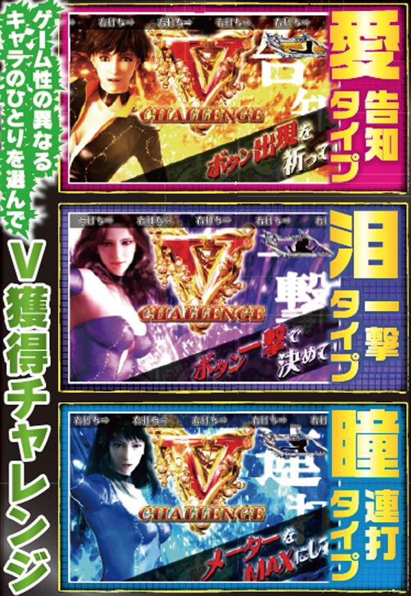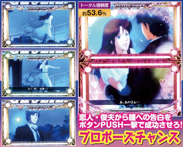 ボタン系演出の特殊リーチで、様々なタイミングから突入する。チャレンジは3種類あり、「プロポーズチャンス」なら信頼度は約50%超!