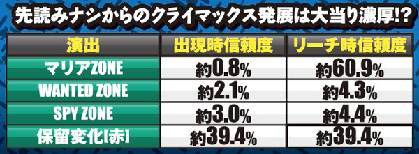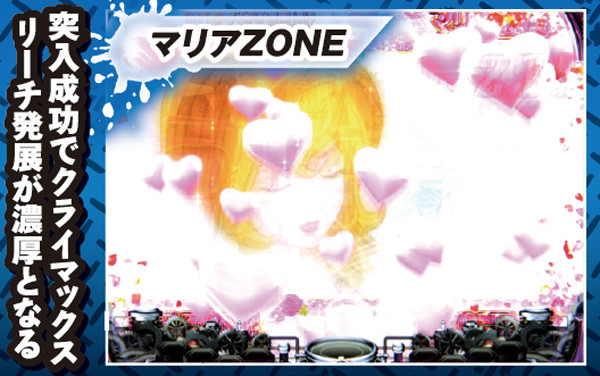 図柄が3つ揃えば突入のマリアZONEや赤保留は初当りを呼び込む大好機演出だ。