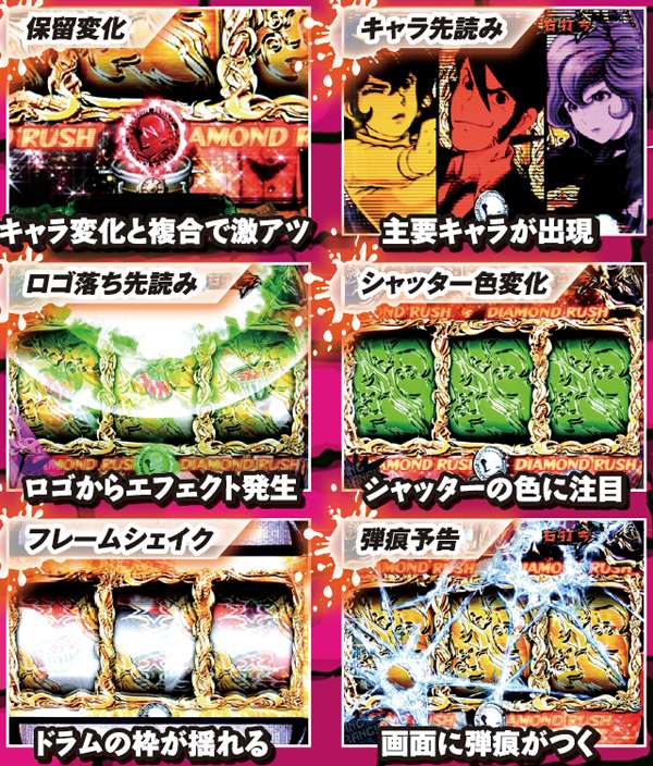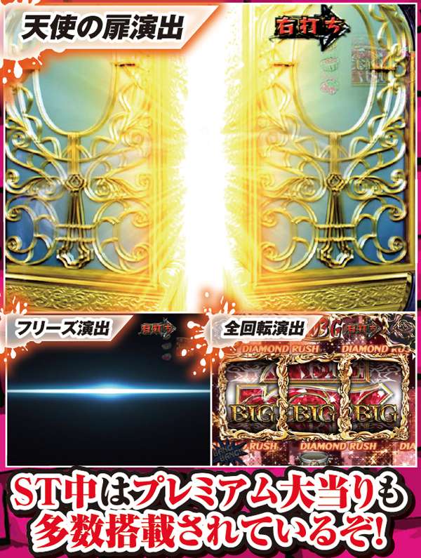 スロットマシンのような演出で展開するST中は、大当り=約2000発なので、発生する演出は超重要。