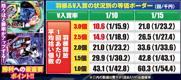 羽根&V入賞の状況別の等価ボーダー