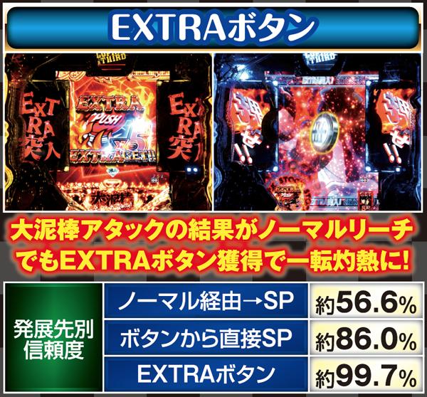 ボタンの数が重要な大泥棒アタック。2〜3個だと期待薄だが、EXTRAボタンなる灼熱のパターンが残されている。なお、大当りした直後のカウントアップは流れる楽曲に注目だ。