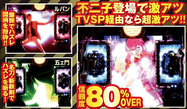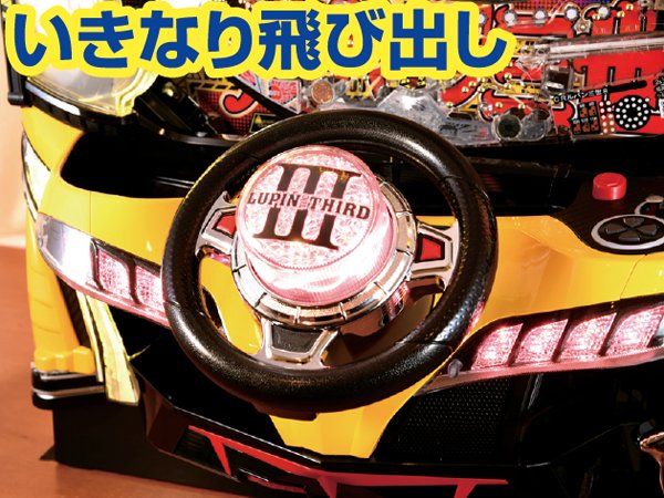 スペックは大当り確率約394.8分の1、ST130回転のシリーズ初となるMAX-V確変機で、ST突入率は60%。STの継続率は約82%と高いことに加えて、大当り時の72%が約2000発となっている。 豪華絢爛なルパン専用筐体で繰り広げられる、魅惑のアクション群も見逃せない!! |