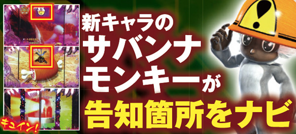 ダチョウが主役となる一発告知モード。サバンナモンキー登場後に出現したボタンをPUSHして「キュイン」音が鳴ればその時点で大当り濃厚だ。告知ポイントはデジタル回転開始や敵登場時など、あらゆる場面に存在するぞ。