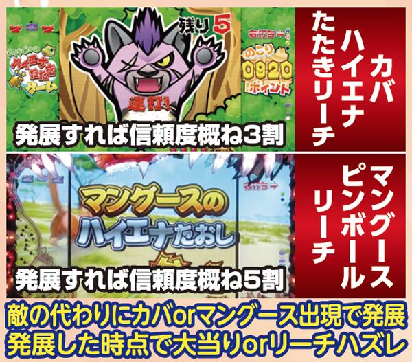 モード共通でカバやマングースのリーチに発展すればサバチャン継続以上が濃厚となるので、安心して見守ろう。