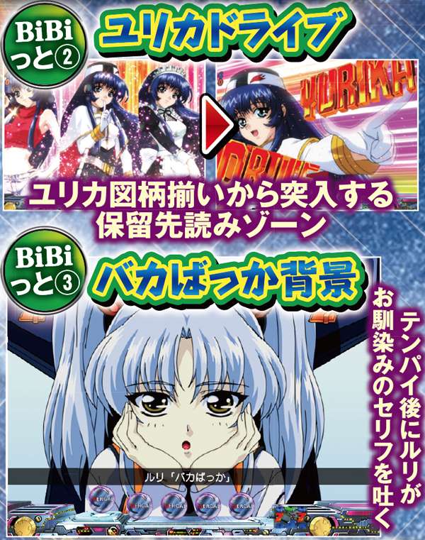 劇場版では艦長を務めるルリの口癖「バカばっか」。遺伝子操作で生まれた彼女、本機においては激アツを告げるシンボリックな存在になる。