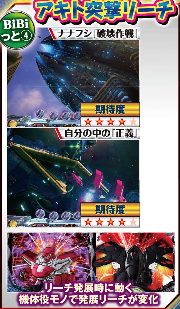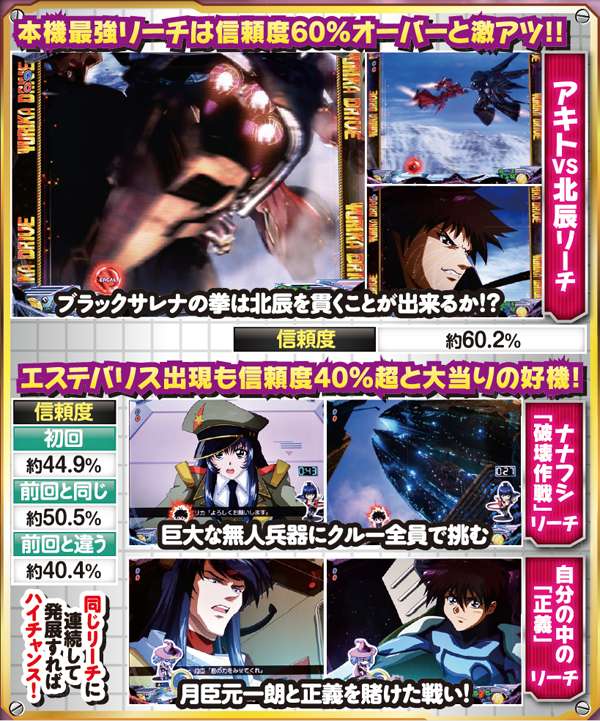 テンパイ後、グラビティブラスト役モノが発動すればナデシコリーチへ。その信頼度は約4割と、アキト突撃リーチに匹敵する。