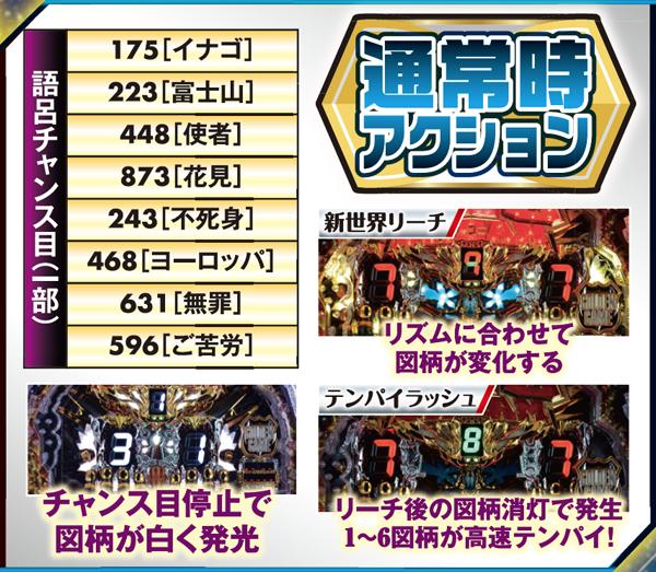 ゴールデンモードに入ってしまえば爆裂が待っている! ゴールデンモード中の爽快なスピードは最近の機種には見られない特別な魅力。 演出も分かりやすい。 打つ時は急に訪れるどハマリに注意!
